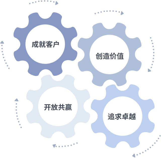 成就客户是一切决策的出发点,创造价值是衡量所有工作的标准,追求卓越是尊龙·Z6做事做人的态度,开放共赢是尊龙·Z6的格局也是最终的结果。价值观的齿轮环环相扣,推动着组织里的每个人不断向前。